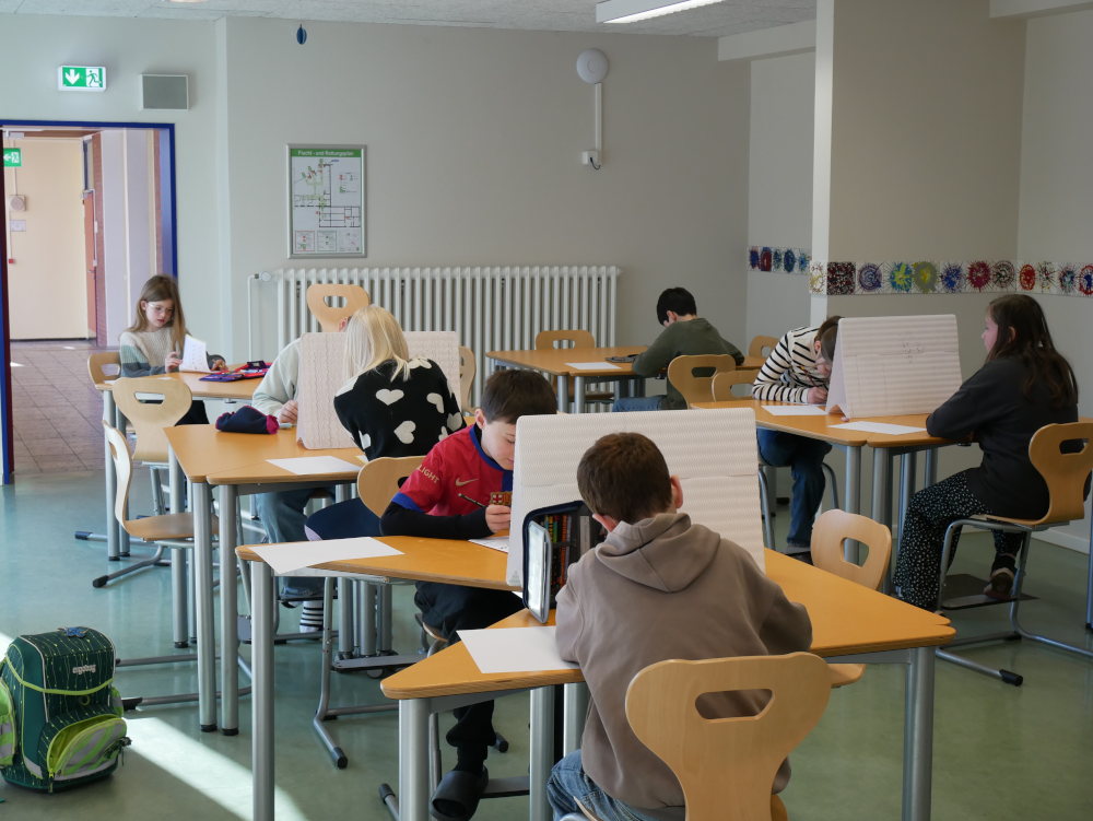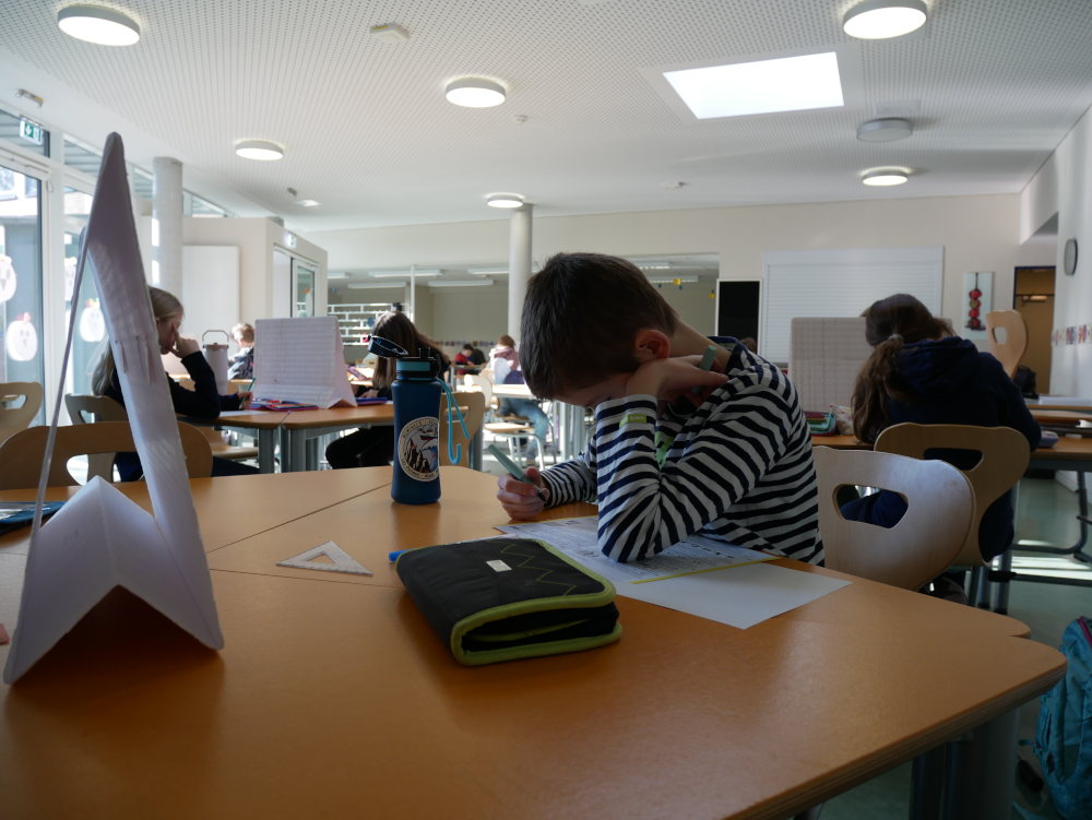 In einem großen Hörsaal der Universität saßen jede Menge Drittklässler und warteten darauf, ihr Können unter Beweis zu stellen. Nach den obligatorischen Begrüßungsworten und Erklärungen ging es dann endlich los. In den nächsten Minuten sah man Köpfe rauchen und Stifte übers Papier fliegen, während über den richtigen Lösungsweg diskutiert wurde.