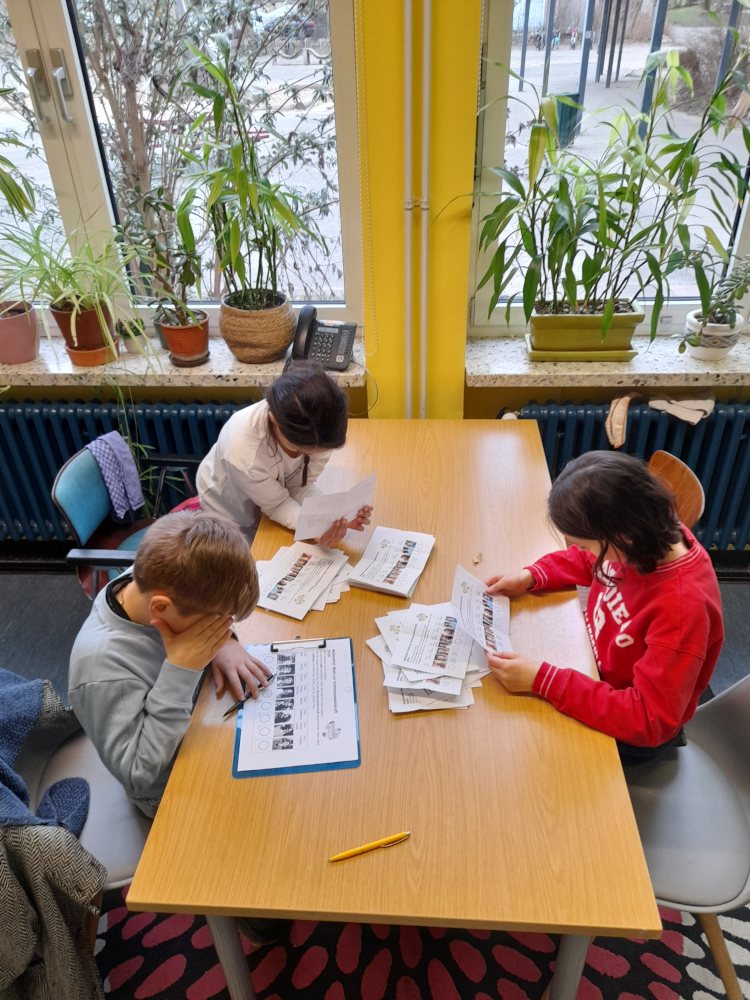 Frau Hieronimi nahm sich dieser Sache an und brachte nach und nach alles auf den Weg: Sie fragte, wer von den Lehrerinnen und Lehrern überhaupt zur Wahl antreten möchte, bereitete Wahlzettel vor und organisierte die offizielle Auszählung. Doch der Reihe nach. Da im Februar viele Kinder krank waren, wurde beschlossen, die Wahl erst im März stattfinden zu lassen, damit möglichst alle Kinder mitwählen können.