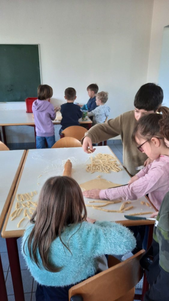 Kinder bereiten Nudeln vor